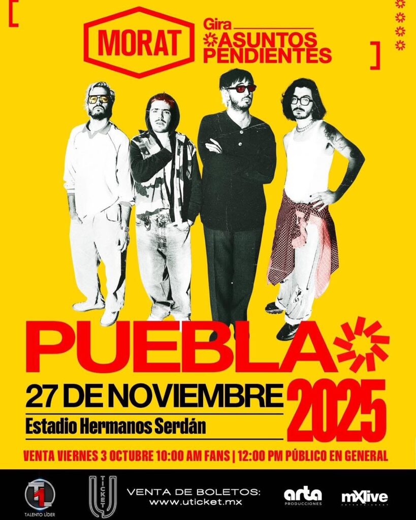 La agrupación colombiana Morat regresa con fuerza a los escenarios con su gira mundial “Asuntos Pendientes” y ha confirmado una fecha muy especial en Puebla. El concierto será el próximo jueves 27 de noviembre de 2025, en el emblemático Estadio de Béisbol Hermanos Serdán, el cual tiene capacidad para recibir a más de 14 mil asistentes.